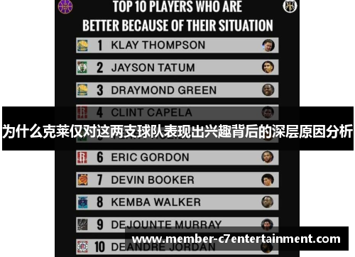 C7娱乐官方网站通过深入分析克莱·汤普森仅对这两支球队表现出兴趣的原因,我们不难发现,这一选择背后是多重因素的综合作用。无论是个人兴趣和职业发展需求、联盟环境和市场因素,还是与球队的历史渊源与文化契合,亦或是他所处的职业生涯阶段与未来目标,都在影响着克莱的决策。这些因素相辅相成,使得克莱最终决定将自己的职业未来与这两支球队紧密相连。